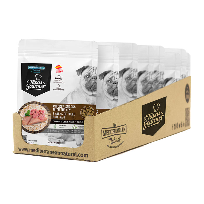 Las Tapas de MEDITERRANEAN NATURAL son un snack 100% natural elaborado con carne y pescado de primera calidad.